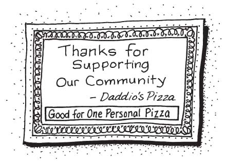 When Kimberly Gentry wanted to sink deep roots into her rural community, she named her place “Team Pizza,” painted it the local high school’s colors, and lined the walls with 8 x 10 photos of local athletes and cheerleaders. But what really cements local loyalty is Kimberly’s generous support of athletic booster club fundraising. For each big game, Kimberly provides the booster snack bar with 40 hot pizzas at cost, which volunteers resell for $3 a slice. Additionally, grandstand announcers regularly encourage fans to enjoy a slice, “generously provided by Team Pizza.” As a result, many locals, especially athletes and their families, consider Kimberly’s place their unofficial headquarters!