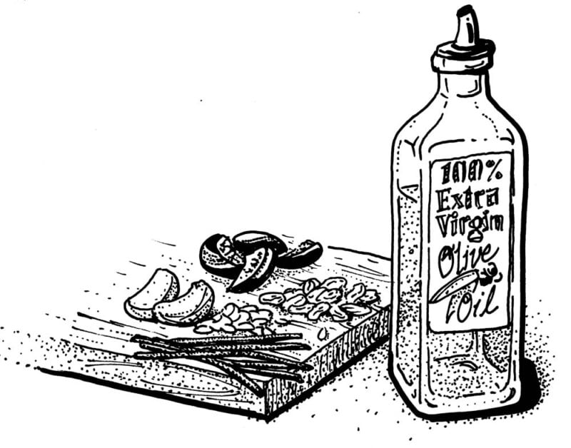 - 2 cups extra virgin olive oil plus 4 tablespoons