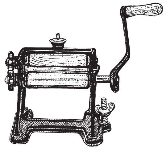 - Reduce the roller gap by one setting (1/16”) and pass the dough through. Lightly dust dough surface and rollers with flour if they begin to stick. After each pass, tighten the roller by one setting until the dough is 1/16 inch thick. If pasta begins to tear, go back to a larger setting, fold pasta over and reroll.