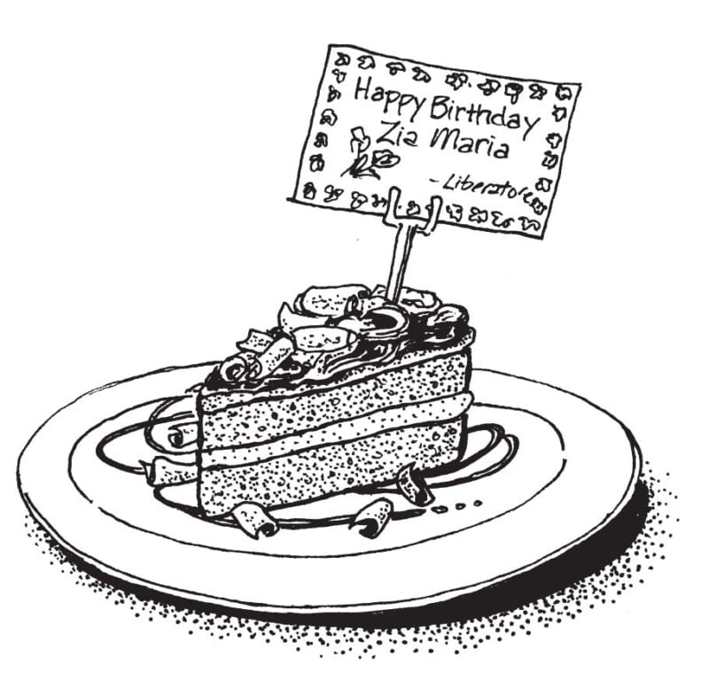 To keep the process running smoothly, it follows specific steps. First, once the celebratory meal is underway, the honoree’s name and a brief message are printed onto a florist style card via the computer in the “carry out” area of the restaurant. (e.g., “Happy Birthday, Zia Maria! Please enjoy a glass of wine on us when you next visit! – Liberatore’s.”)