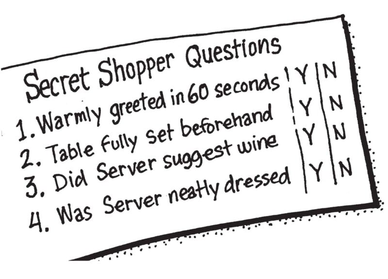 To ensure regular feedback, every few weeks Hugh arranges for a different secret shopper to evaluate his place at a time and day of their choosing. His only requirement is that they keep their participation, well, secret.
