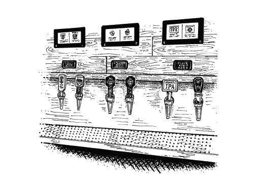 While visiting a Las Vegas restaurant, pizzaioli Chris Zaugg observed a unique selfservice “beer wall.” Patrons presented their IDs at the register to open their tab and received an electronic fob. Along the wall, a screen by each tap displayed the beer’s name and price in cents per ounce. Touching the fob to each tap’s sensor allowed them to pour as much or as little of that brew as they wanted. A computerized system then tracked each guest’s total ounces (and cumulative tab) across all electronically metered taps up to a 48 ounce limit.