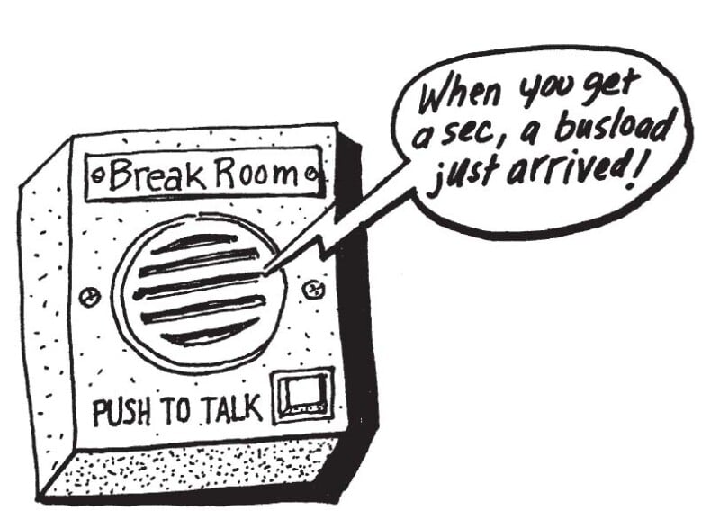 To prevent break schedules from reducing customer satisfaction, Fred encourages employees to be flexible with the timing of breaks by paying them for an extra half hour per shift. That way, if demand surges, anyone on break happily jumps back into the fray to keep customers satisfied!