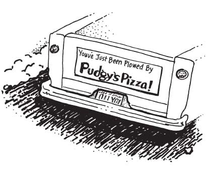 As he drives off, the sign on the back of his truck reads: “You’ve just been plowed by Pudgy’s Pizza!” Helping his snowbound neighbors has made him feel good, attracted new customers, and pulled regulars even closer!